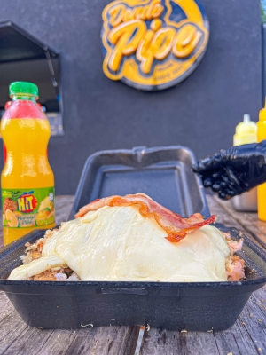 personalizable Papa Criolla, Salchicha Ranchera, Pollo Apanado, Cerdo a la Plancha, Maduro, Ripio, Tomate Milano, Mucho Queso Gratinado, Tocineta Premium, Salsa Rosada, PiƱa y de la Casa. *1330GR*.